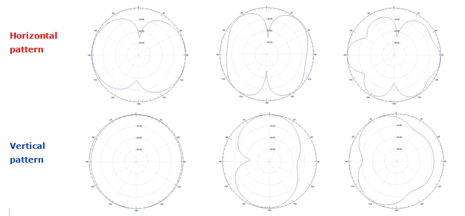 | লাভ (dBi) | 1.5 ± 0.5 | 2.2 ± 0.5 | 4.5 ± 1.0 | 5.0 ± 1.0 | 6.0 ± 1.0 |